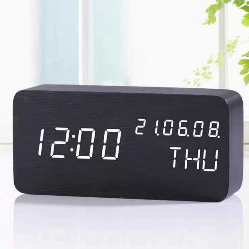 Ceas digital LED, ora, data, temperatura, alarma, alimentare duala, MDF
