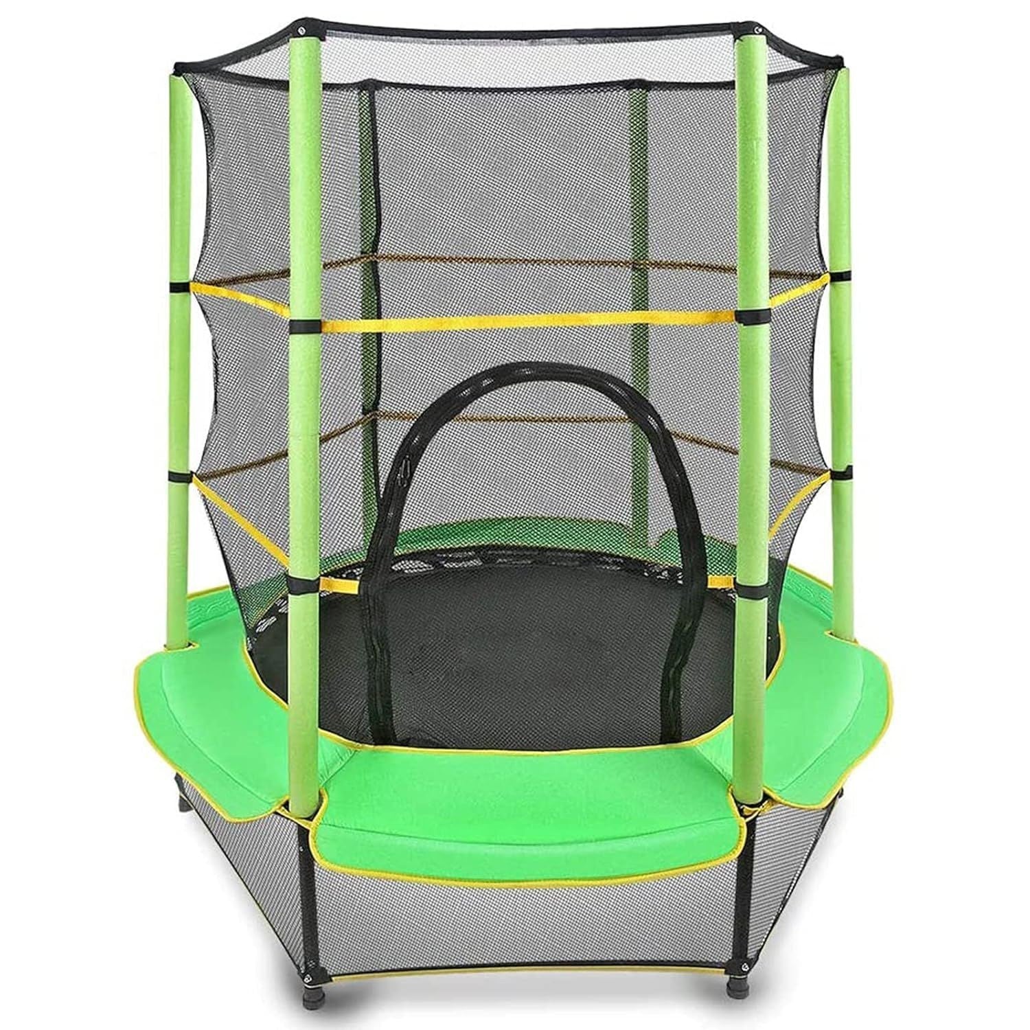 Trambulina copii, diametru 140 cm, maxim 45 kg, cu plasa de protectie, scara acces, verde