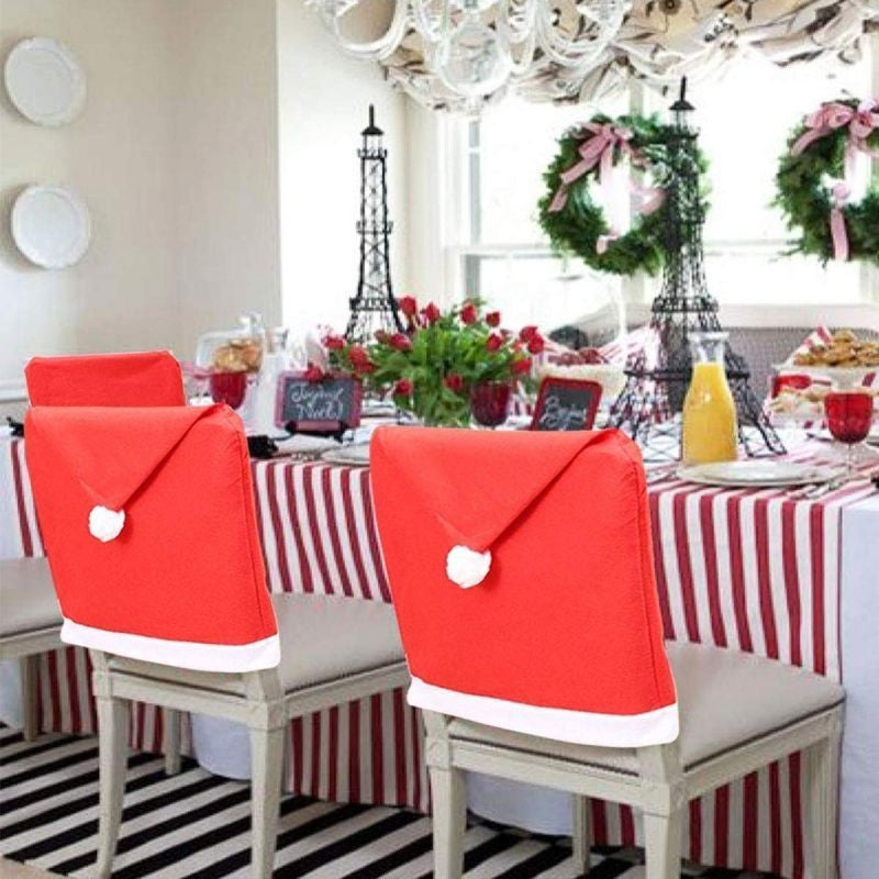 Imbracati-va scaunele in perioada Craciunului cu aceste huse vesele in tematica sarbatorilor de iarna. Husa rosie in forma de caciula cu margine si ciucure alb va atrage cu siguranta privirile tuturor membrilor familiei.