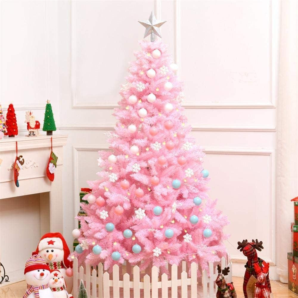 Brad artificial de Craciun, roz, inaltime 200 cm, suport alb, ramuri flexibile