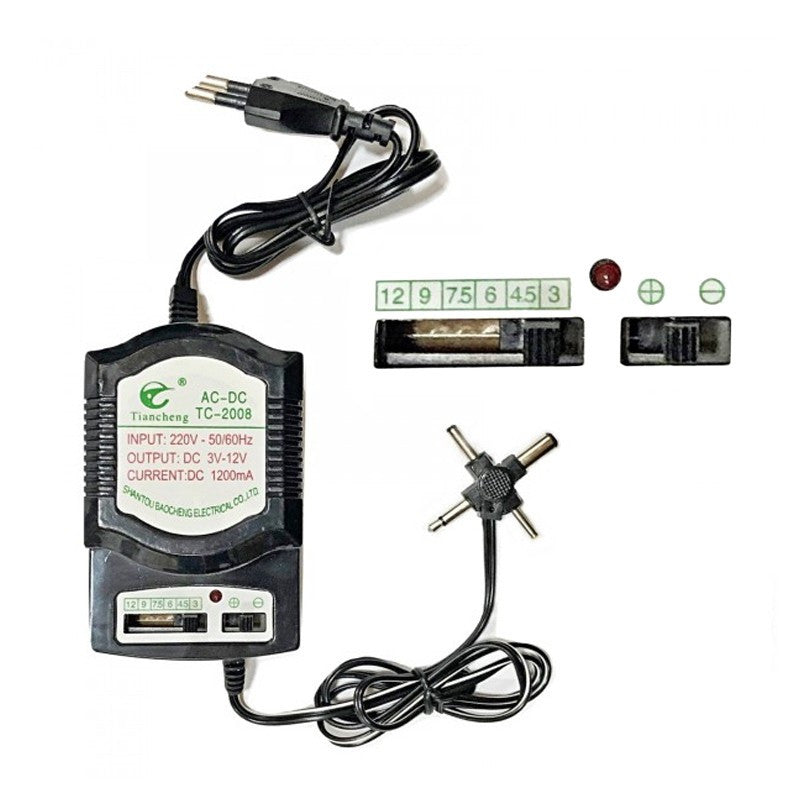 Adaptor universal 4 mufe, AC 220V, DC 1200 mA, transformator reglabil 3V-12V
