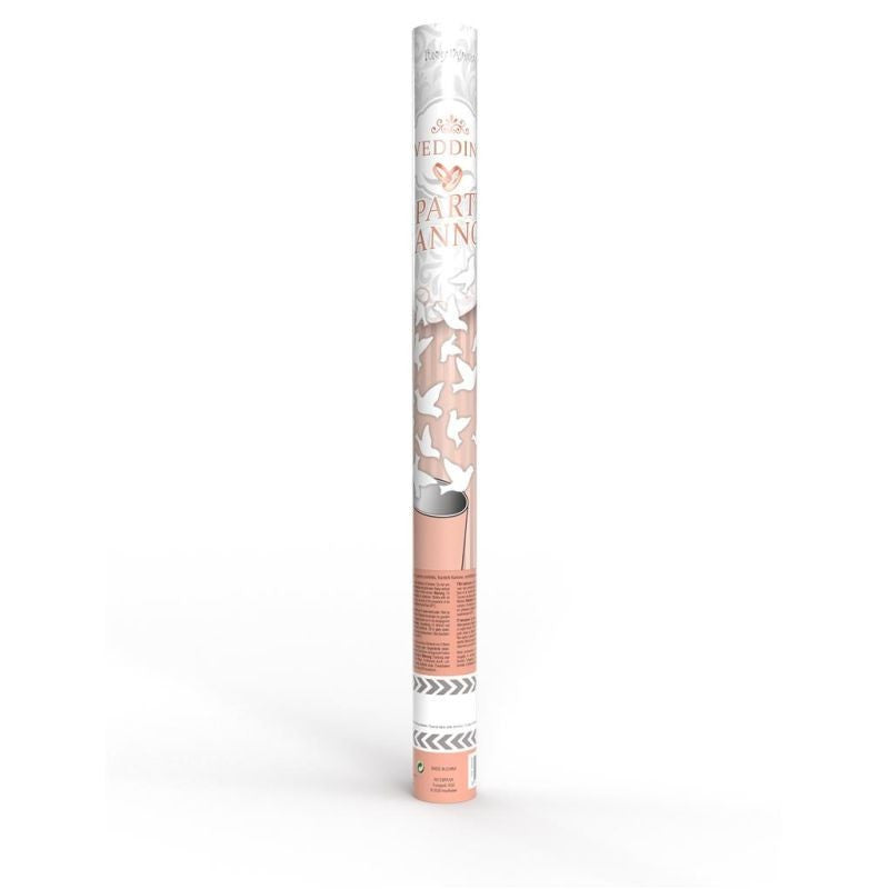 Tunurile de confetti se clasifica printre cele mai utilizate accesorii de divertisment atunci cand vine vorba de petreceri. Tunul este umplut cu confetti in forma de porumbei de culoare alba ceea ce il face potrivit pentur petrecerile de logodna sau de casatorie.