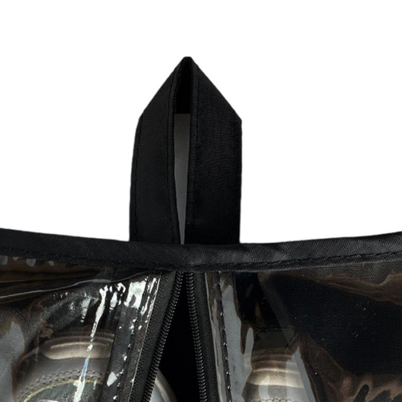 Husa este potrivita pentru depozitare incaltamintei de orice tip, oferind protectia necesara impotriva zgarieturilor sau a prafului. Dispune de un maner pentru transport sau agatare si de inchidere cu fermoar. Pentru o identificare mai usoara a incaltamintei din itnerior, o parte a husei este transparenta.