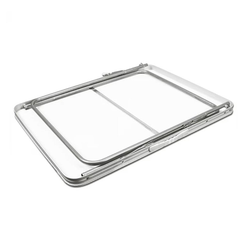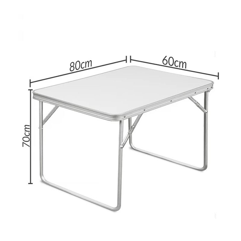 Masa pliabila pentru camping, 80x60x70 cm, blat laminat, cadru aluminiu, alb gri