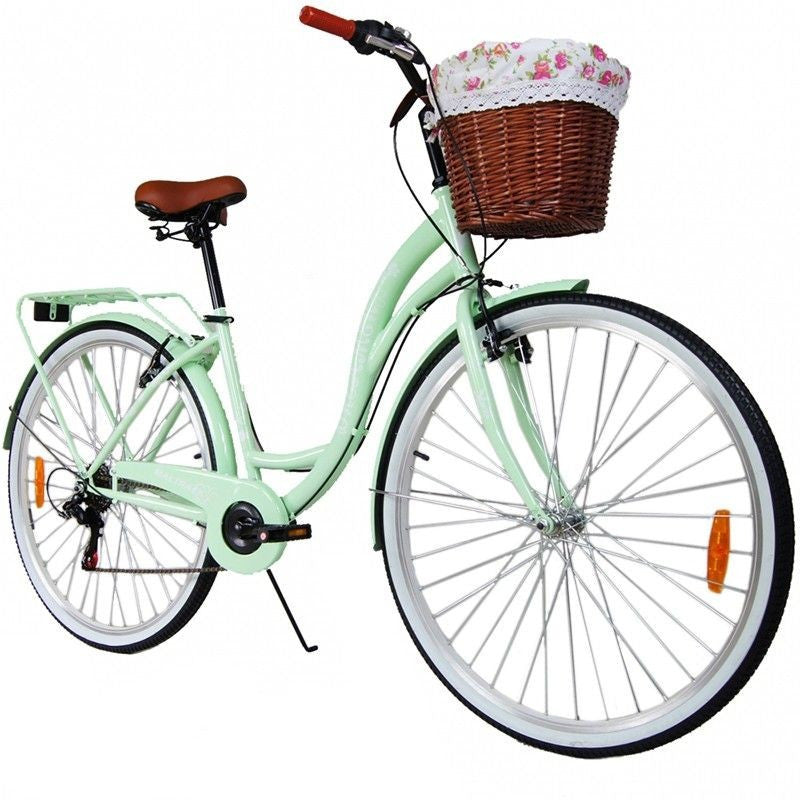 Bicicleta de dama, 28 inch, 6 viteze, cadru otel fara bara, cos ratan