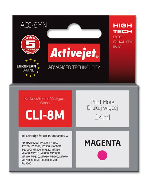 Cartus compatibil CLI-8M Magenta pentru Canon, 14 ml, Premium Activejet, Garantie 5 ani