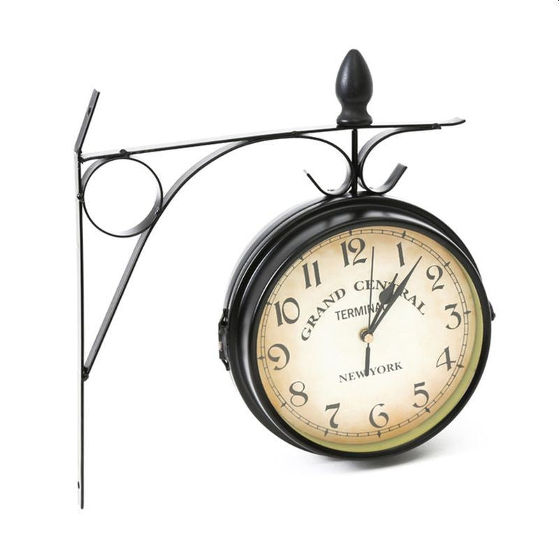 Ceas de perete New York Grand Central, 2 fete, metalic, diametru 19.5 cm, stil retro