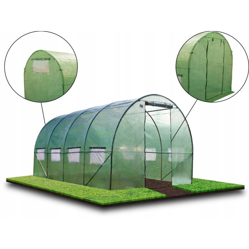 Sera solar, 4x2.5x2m, tip tunel, pentru gradina, folie cu protectie UV4, ferestre, verde