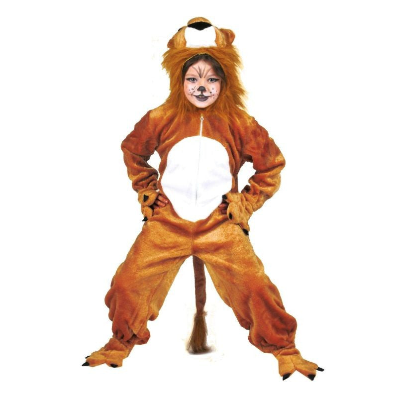 Costum Leul Simba tip salopeta, fetite si baieti, inchidere fermoar, maro-alb