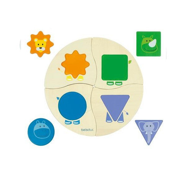 Pe fiecare forma este reprezentat cate un animal salbatic (leu, rinocer, hipopotam, elefant).Dimensiuni ambalaj: aprox. 22 x 22 x 6 cm