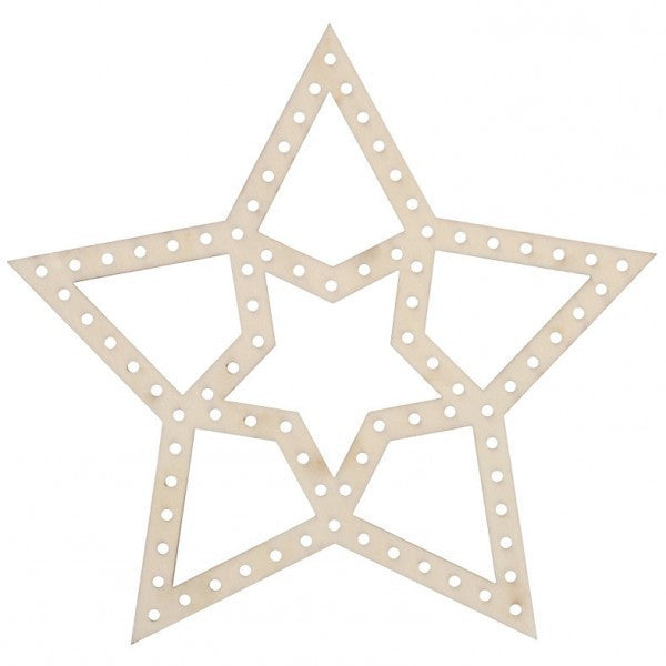 Stea din lemn natural prevazuta cu numeroase orificii pentru a putea fi insiretata.