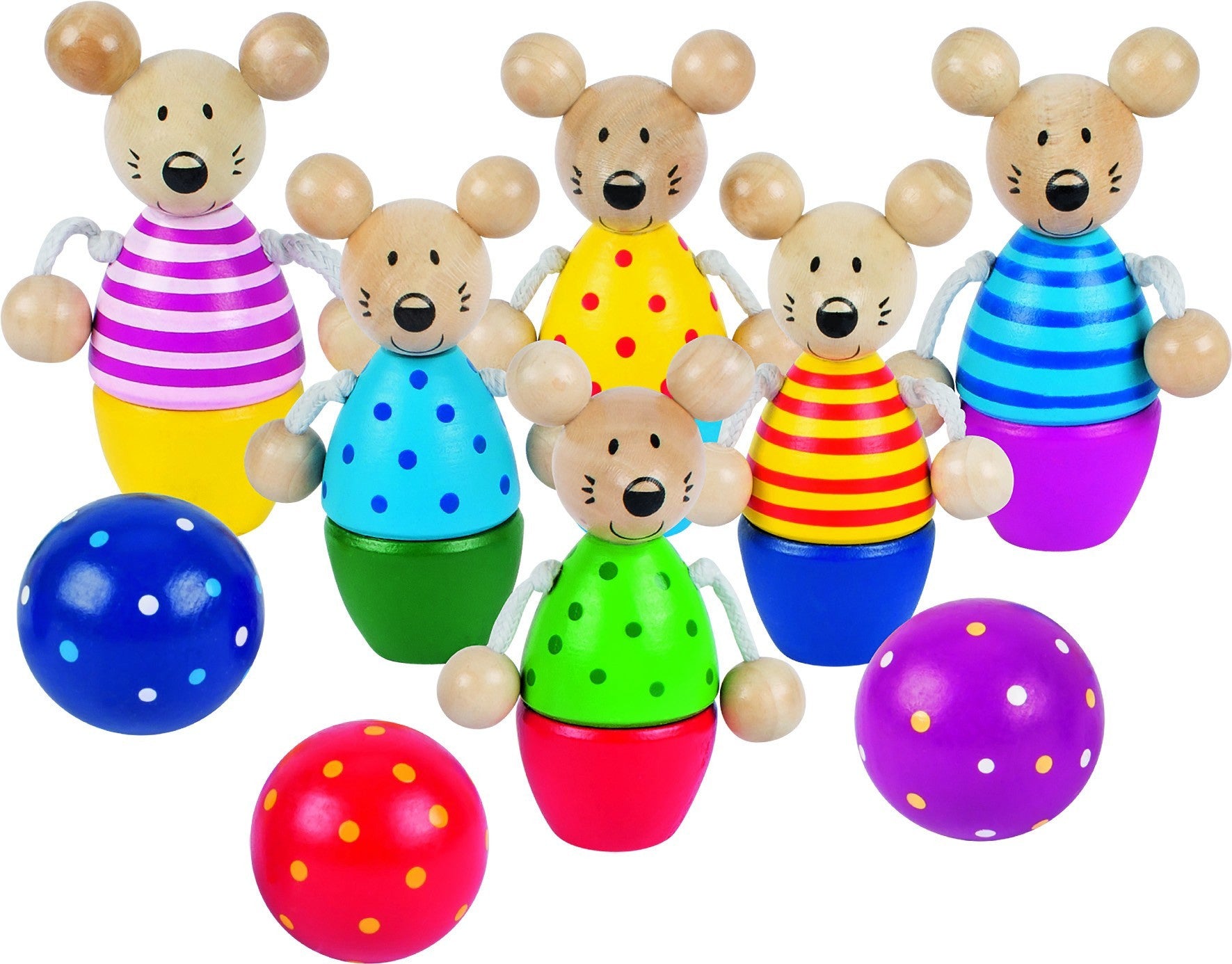Pachetul contine: 6 popice de bowling, 3 bile, instructiuni de joc