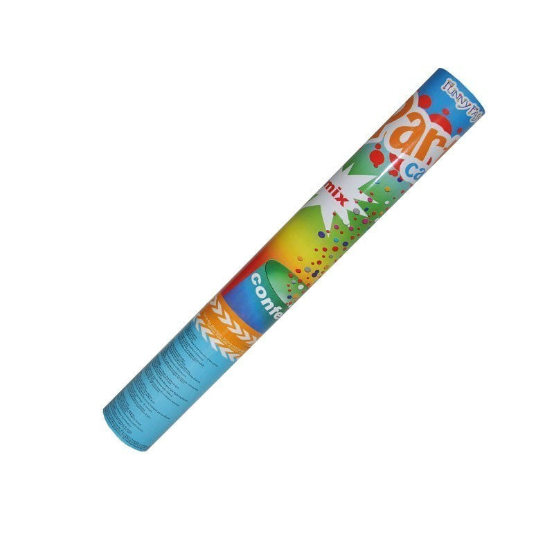 Actionate cu aer comprimat printr-un sistem de tragere si rasucire confettile din interiorul tubului vor umple incaperea de culoare si veselie.