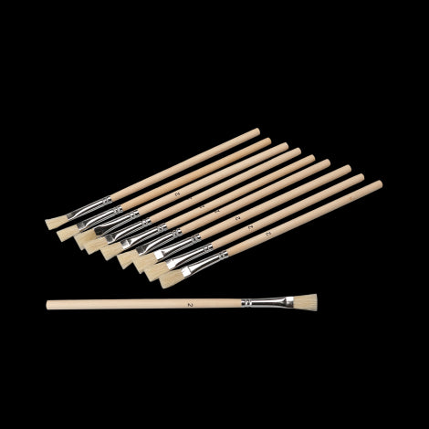 Set de 10 pensule din lemn, ce pot fi folosite la intinderea lipiciului pe suprafete.