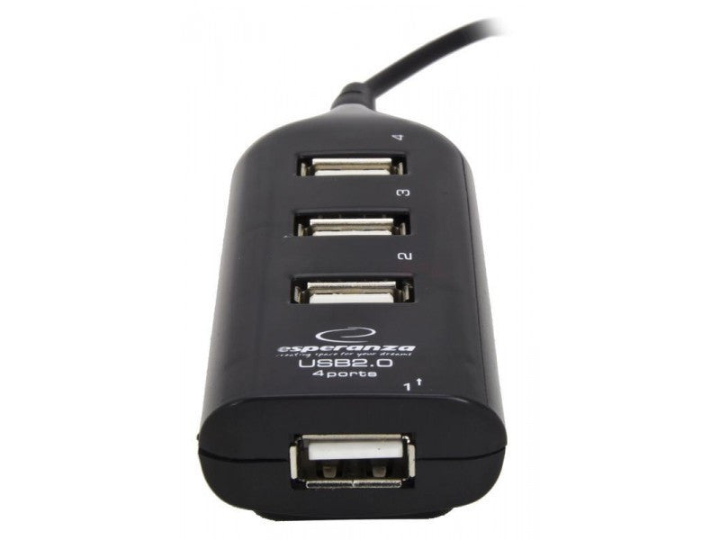 HUB 4 porturi USB Esperanza cu 4 porturi de mare viteza USB 2.0, ideal pentru conectarea simultana a mai multor dispozitive precum STICK, CARD READER, etc. la PC-ul dumeneavoastra.