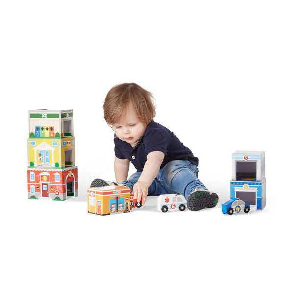 De asemenea, copiii pot amesteca numerele de pe cladiri si vehicule sau le pot potrivi in functie de culoare pentru a pune impreuna perechile corecte, consolidand conceptele de invatare timpurie in timp ce se joaca.