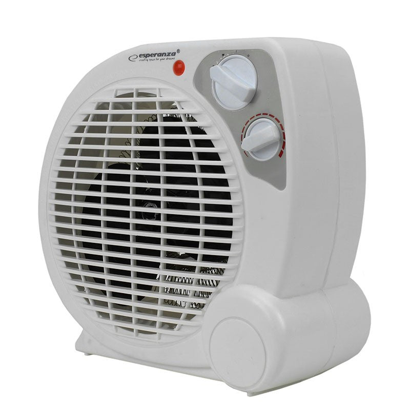 Aeroterma electrica, 2000W, functie aer rece, termostat, Esperanza MojaveAceasta aeroterma portabila este solutia perfecta pentru casa dumnevoastra atat in sezonul rece cat si in sezonul cald. Puteti incalzi rapid si eficient oricare dintre incaperile locuintei, respectiv baia, dormitorul, holul sau camera copilului.Aeroterma poate fi folosita si ca dispozitiv de racire, fiind dotata cu functia de suflare a aerului in zilele calduroase.Datorita dimensiunilor mici si designului modern poate decora orice interior, de asemenea fiind foarte utila.Caracteristici:- tensiune de alimentare 230V;- frecventa 50 Hz;- putere nominala de intrare 2000W;- clasa de siguranta II (protectie impotriva socurilor electrice);- are 2 trepte de incalzire 1000/2000W;- termostatul pentru temperatura se poate regla in functie de intensitatea dorita;- functie pentru suflarea aerului rece;- indicator de putere (aer rece/treapta I si II);- dispune de un sistem de protectie in cazul supraincalzirii;- maner integrat pentru a putea fi transportata mai usor;- LED indicator pentru modul de functionare;- 2 pozitii de lucru disponibile: in pozitie verticala si pozitie plana;- aeroterma este confectionata din ABS rezistent;- elemente de incalzire foarte eficiente (nu ruginesc);- este recomandata pentru utilizare in interior;- se alimenteaza la priza cu cablul de alimentare integrat;- lungimea cablului este de 1.2 m;- dimensiuni 22 x 22 x 11 cm;- culoare alb.