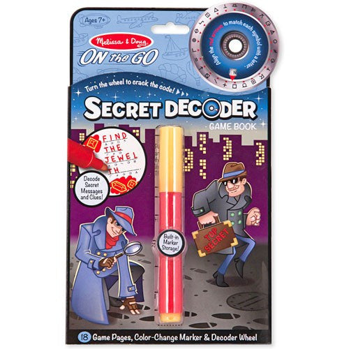 Set de decodare mesaje secrete ce contine 1 carnet cu activitati, inel pentru decodare si marker pentru mesaje secrete.