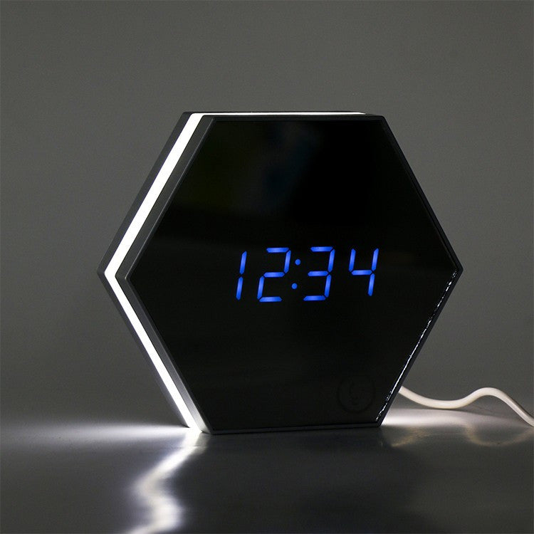 Ceas digital LED cu oglinda, USB, lumina veghe, data, termometru, 15 cm