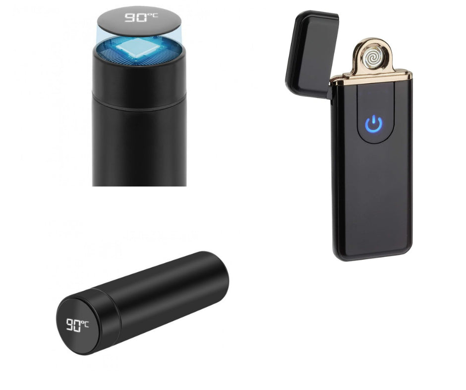 Partenerii de Calatorie: Termos si Bricheta Electrica" reprezinta o combinatie perfecta pentru aventurierii si calatorii care doresc sa exploreze lumea cu confort si usurinta. Acest set ingenios imbina doua produse esentiale pentru a face calatoriile si activitatile in aer liber mai placute si mai convenabile.