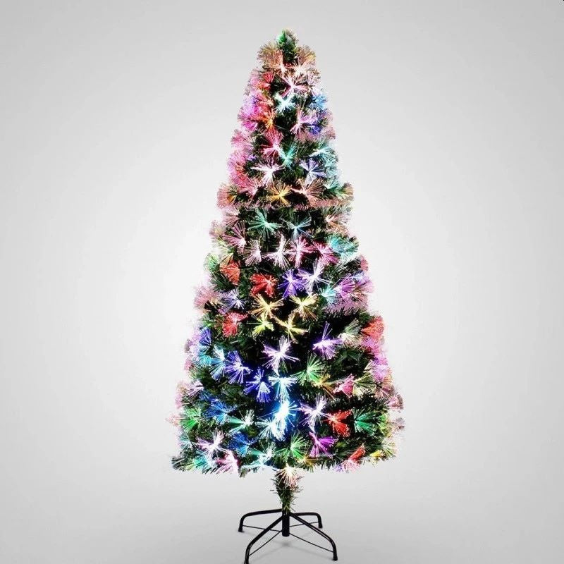 Brad artificial de Craciun, fibra optica multicolora, inaltime 180 cm, suport metalic
