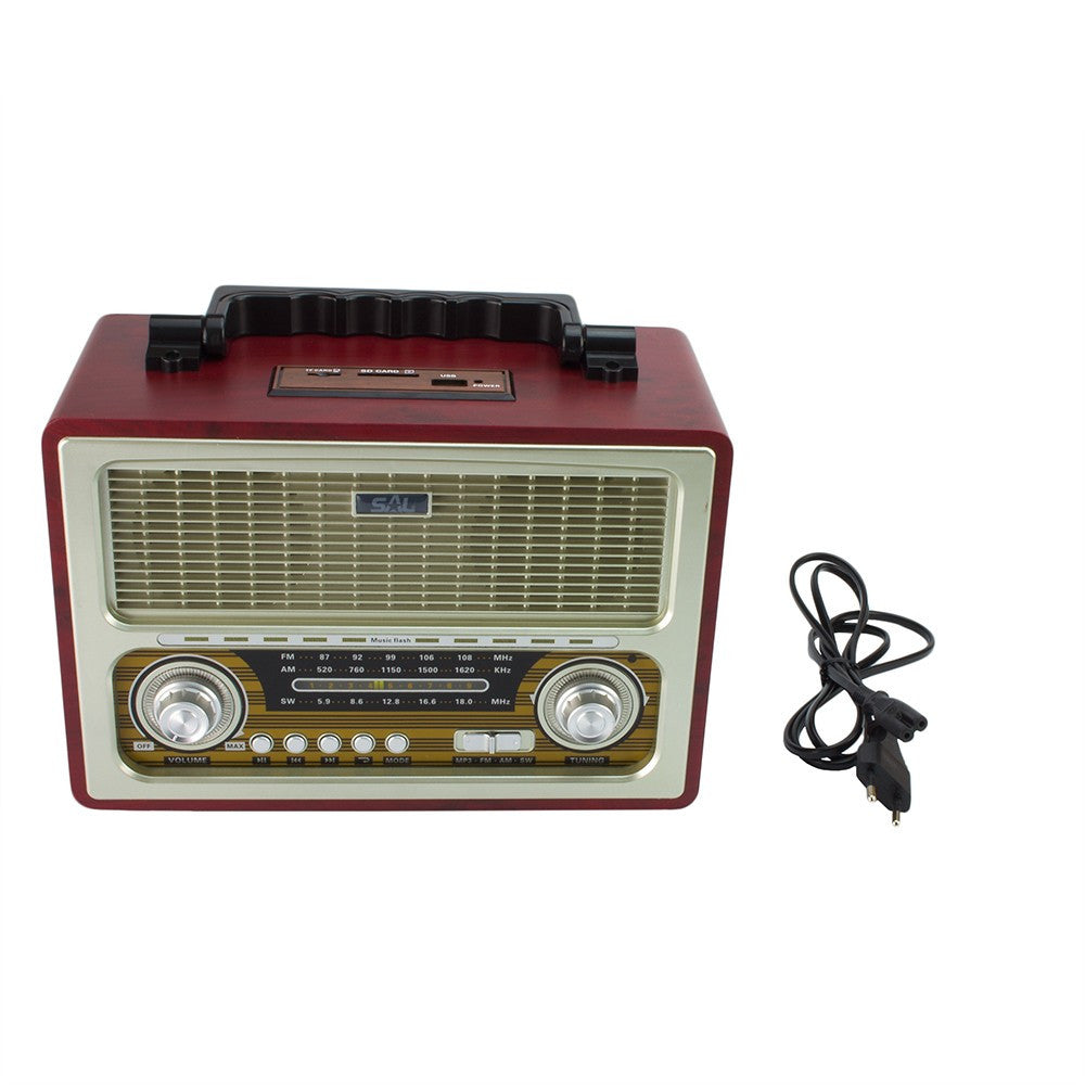 Radio portabil retro, bluetooth, 6W, MP3, USB, SD, 3 benzi AM FM SW, Sal